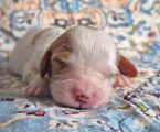 We will discuss the fur types at the 5-6 week puppy choosing, but at least 5+ puppies look like they will have a fluffy/curly coat and there could be more and there could be less. We will continue to assess up until the time of choosing as we are fairly certain that this litter is premature by a few days, and that can greatly affect how coat type appears when you consider that puppies are growing and changing daily. They can literally grow ounces within hours!