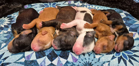 Chanah gave birth to 6 gorgeous puppies on November 27th between 10:30 AM and 2:14 PM! There are 4 Girls and 2 Boys and they are all vibrant colours!